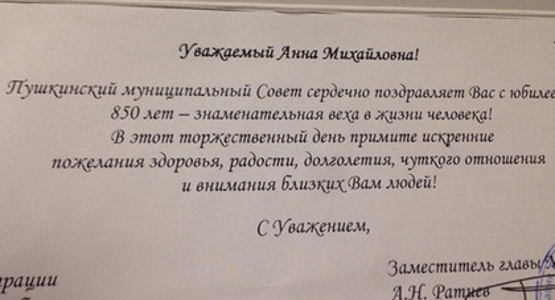 Депутаты Петербурга поздравили блокадницу с 850-летием