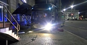 В Могилеве электробус ночью снес остановку — водитель не справился с управлением