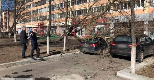 В Гомеле ветер повалил дерево сразу на два припаркованных авто — фотофакт
