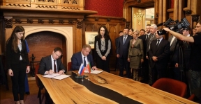 Фотофакт. Белорусский флаг стоял вверх ногами, когда Мединский жаловался на притеснение русского языка