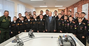 Петербургские суворовцы показали Путину роботов. Те оказались сделаны в Южной Корее