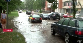 Машины в воде и вырванные деревья. Последствия сильного ливня в Гродно