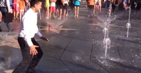 Зеленский в Мариуполе пробежал через работающий фонтан