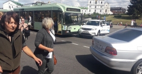На Немиге столкнулись троллейбус и автомобиль с символикой Европейских игр