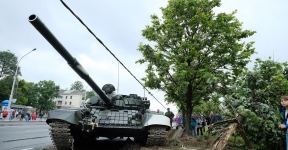 В Минске после парада танк едва не влетел в пешеходов на тротуаре