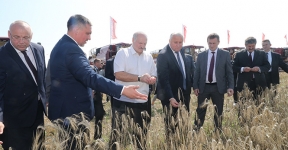 Фотофакт. Все теребят колосок вместе с Лукашенко. Лишь один воздержался – кто он?