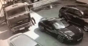 Водитель голыми руками остановил покатившийся на Porsche КамАЗ