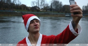 В Гродно Дед Мороз переплыл Неман, чтобы поздравить земляков и белорусов с Новым годом