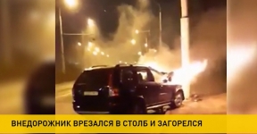 ДТП в Минске: на улице Пономаренко автомобиль врезался в столб и загорелся