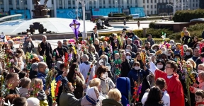 Фото дня. Верующие в масках на Вербное воскресенье