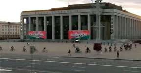 Видео дня. В центре Минска десятки велосипедистов проехали колонной, а также сделали круг почета