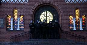 Riot Police Block Doors Of Red Church With About 100 People Inside