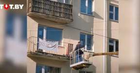 Чем они занимаются? В Минске коммунальщики с подъемником снимали простыню с надписью «Это не флаг»