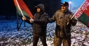 Участники провластного автопробега в «Тростенеце» топтали бело-красно-белый флаг