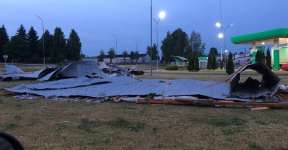 В Мяделе сильный ветер сорвал новую крышу со здания склада