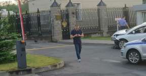 Появилось эффектное видео тарана ворот посольства России в Минске