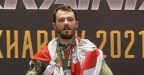 Белорусский боец поднялся на пьедестал с бело-красно-белым флагом