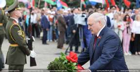 Минская Стела 3 июля превратилась в огромный бело-красно-белый флаг