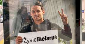 «Жыве Беларусь!» на остановке в Варшаве
