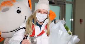 Анна Гуськова, завоевавшая на Олимпиаде серебро, прилетела в Минск. Смотрите, как ее встречали
