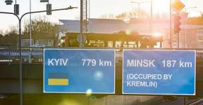 В Вильнюсе появился новый дорожный знак с направлением на «Минск, оккупированный Кремлем»