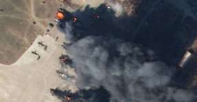Российская техника и вертолеты горят в аэропорту Херсона: фото со спутника