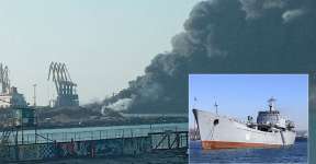 Появилось детальное видео уничтожения российского корабля «Орск» в Бердянске