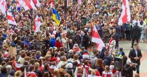 «Света — президент!» Тысячи людей собрались на белорусское антивоенное шествие в Варшаве