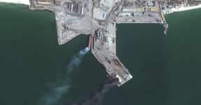 Maxar показала снимки уничтоженного российского корабля в Бердянске