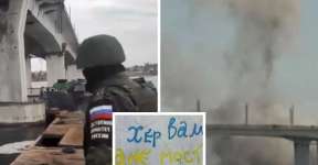 HIMARS уничтожили колонну военной техники РФ на баржевом мосту в Антоновке
