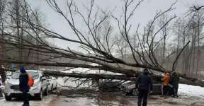 В Раубичах ветер снес дерево прямо на припаркованную легковушку