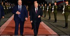 Путин спустился с самолета к Лукашенко по пуленепробиваемому трапу