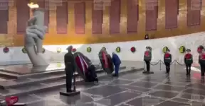 РосСМИ показали, как Лукашенко чуть доковылял до возложения венков на Мамаевом кургане