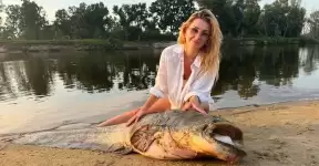 Девушка выловила из Припяти гигантского сома длиной 2,25 метра