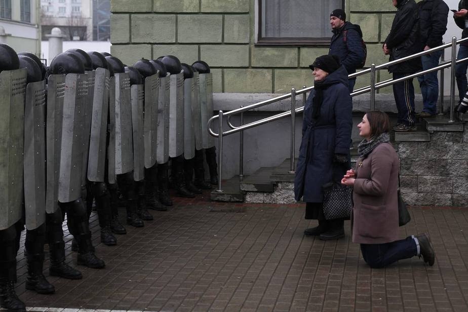 Женщину, которая встала на колени перед шеренгой ОМОН и молилась, не задержали