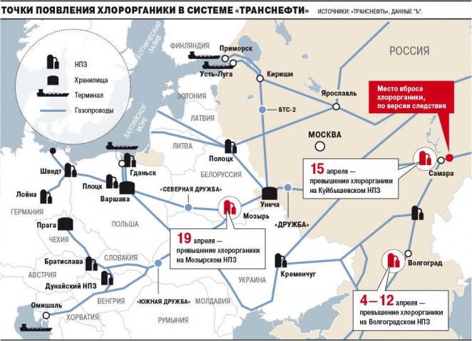 According to the Russian media Kommersant, it was known about the pollution of Russian oil by organochlorine in Druzhba pipeline two weeks before Belneftekhim filed the relevant complaint. According to the publication, the Volgograd oil refinery of Lukoil recorded harmful impurities on April 4. This lasted until April 12. There was an appeal to the enterprise Transneft-Privolga in this case. Both Transneft and Lukoil acknowledged that there had been such a problem, but it was not related to the subsequent problems at the Druzhba pipeline. How organochlorine compounds could have got into oil was not explained. A Kommersant source claims that it's standard practice to supply oil to refineries with a slight excess of organochlorine content.