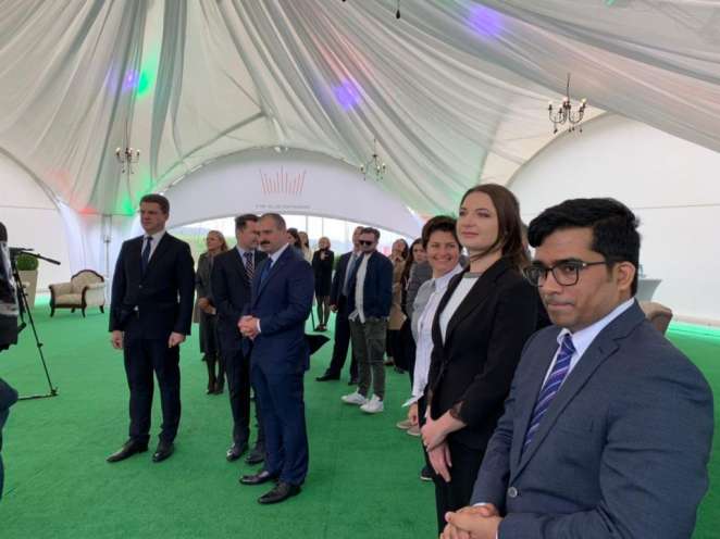 Prime Minister of Belarus Roman Golovchenko and Chairman of the Arab Emaar Properties Mohammed Alabbar placed a capsule in the foundation of the national exhibition center. It will become the first building in the area where the construction of a smart city for $4 billion will begin. Although there is only an open field at the intersection of the Dolginovsky trakt and the Minsk Ring Road, investors are confident – the first facility will be built in less than a year and a half.