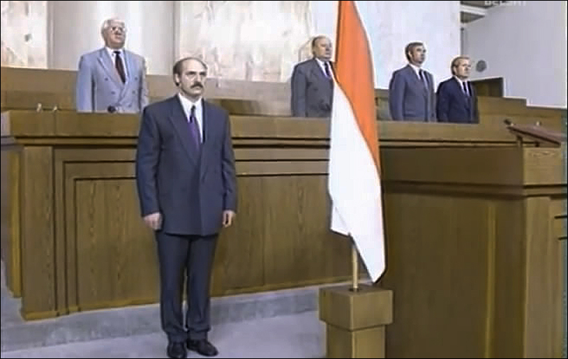 Lukashenka during his first inauguration with the white-red-white flag, Source: naviny.by