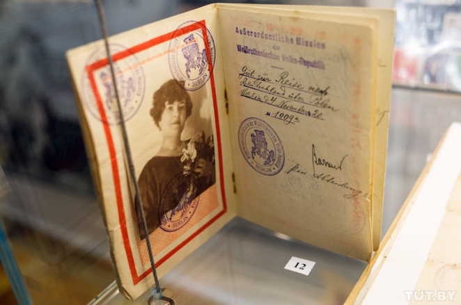 A BNR citizen’s passport exhibited at the National History Museum. The document is stored in the collections of the Hrodna History and Archeology Museum. Photo: Dmitry Brushko, TUT.BY