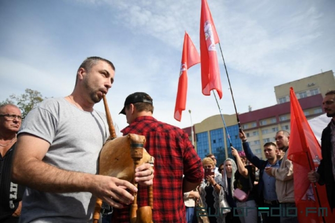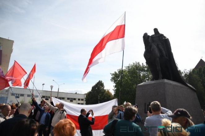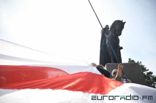 The ceremony was attended by the representatives of the region and city authorities as well as opposition activists. Both the official red-green flags and historical previously banned white-red-white flags could be seen next to each other during the launch.