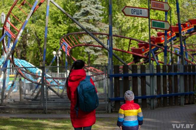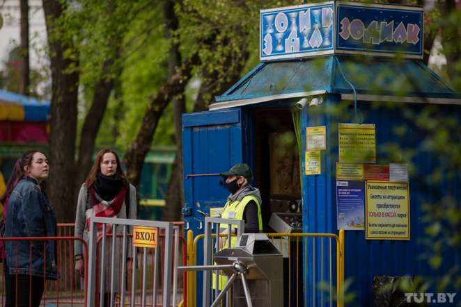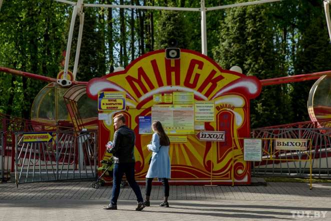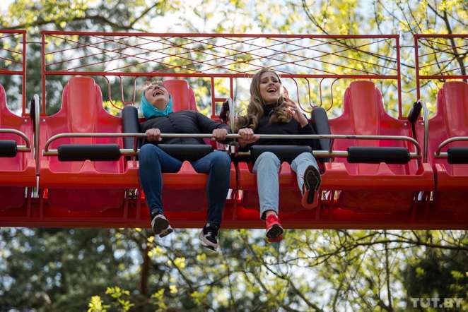 On-duty staff treat the attractions with a disinfectant every day before the amusement park opens and later in the day. If a visitor asks for additional desinfection, it is also provided. Take a look at how Minskers are enjoying spring days in blossoming theme parks.