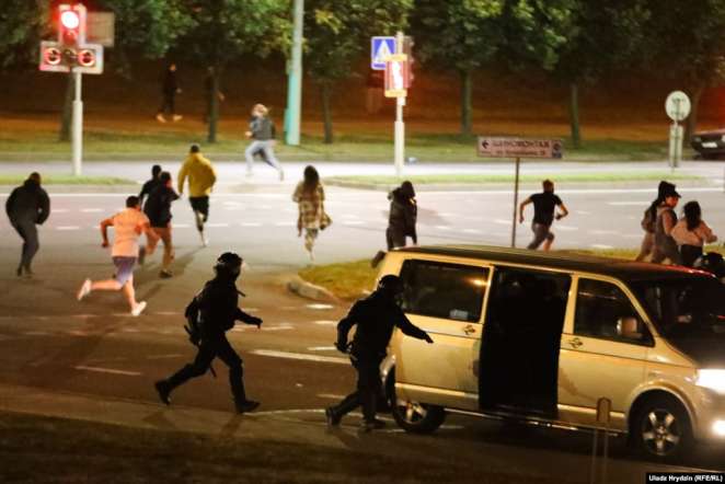Some colleagues and I drove into central Minsk, and as we got close to the Hero City Obelisk we could hear what sounded like shooting.