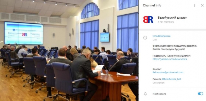 In January 2016, Moscow hosted a conference on the future of Belarus and Russia, which had the same title: “BeloRussian Dialogue.” The conference’s logo matches the logo of the Telegram channel.