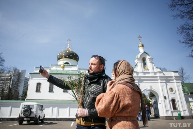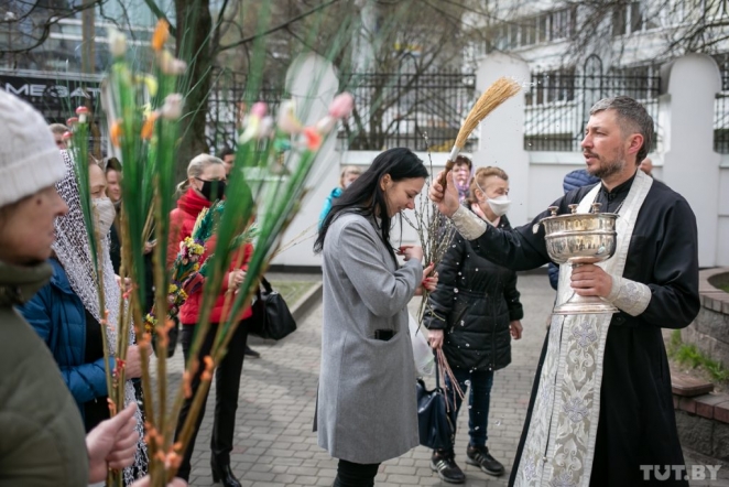 TUT.BY photoreportes visited the city centre to see how the believers who decided not to stay at home were celebrating Palm Sunday.