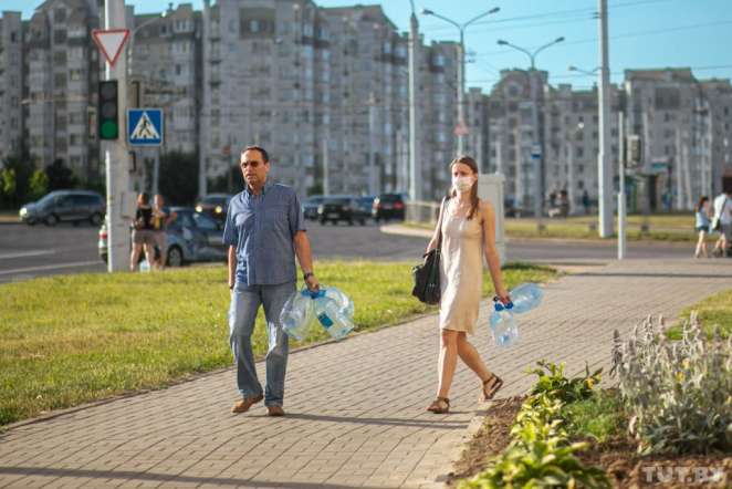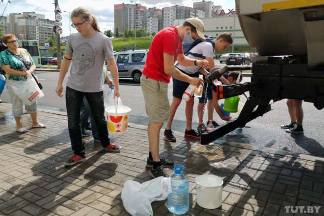 People could not reach Minskvodokanal to order the delivery of extra water in tanks. Some organized themselves in mutual support groups. Minskers living in districts with clean water invited fellow citizens to get as much water as they needed, others deliver water to kindergartens, hospitals, clinics and orphanages.