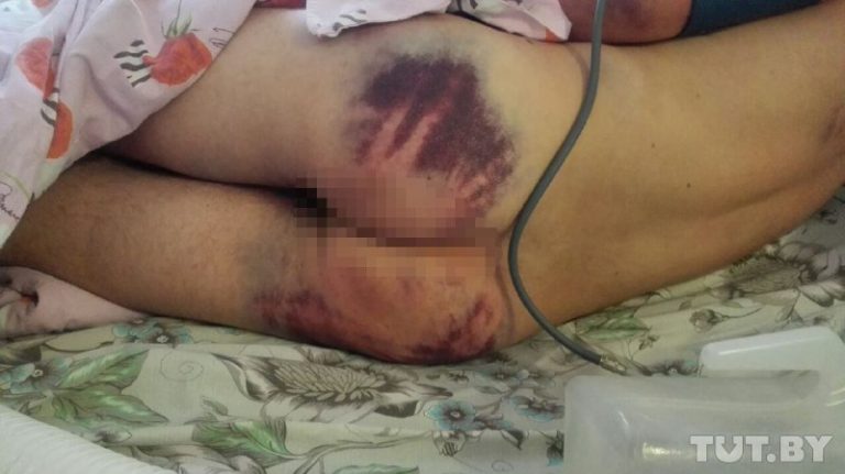 Sergey was taken from the detention center on Okrestina street straight to the ICU of a Minsk hospital. His famliy, after seeing his condition, recorded his story. They say they did this to keep him safe, so no one would force him to change his testimony later. Not to bother the man, his relatives passed the recorded interview to TUT.BY journalists.“I was at Pushkinskaya metro station, separated from the rest of the crowd, and was walking home alone. A small van drove up to me, four people forced me onto the ground and started beating me with batons. They forced me into the van and drove for less than an hour, then they threw me into a riot police van. There they used tear gas and tasered before taking me to detention centre on Okrestin street. When we arrived, I was beaten again and forced into a plank position, this lasted for an hour.”