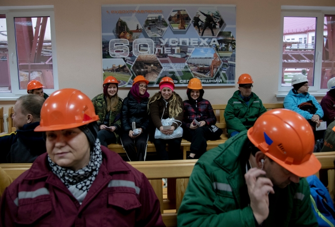 Buses shuttle visitors, dressed in heavy coats and hard-hats, to the mine head for a six-hour afternoon shift underground and, for the really hard core, a longer overnight shift. Miners and patients cross paths in the waiting area for elevators and on the walk to the sleeping chambers.