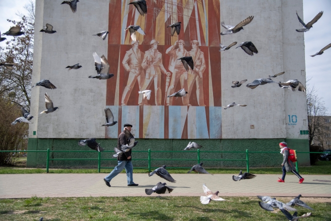 The streets are eerily clean, as they are across Belarus. Concrete apartment blocks are painted with murals celebrating miners, and the only advertising billboards are for cement.