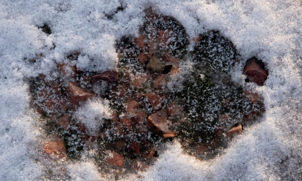 The footprint of a large male wolf in the abandoned village of Smalehau
