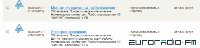 This company posted a series of vacancies on the local Astravets website on July 25. There you can find welders, foremen, installers and engineers. Most of the vacancies promise a salary of 1,000 rubles.